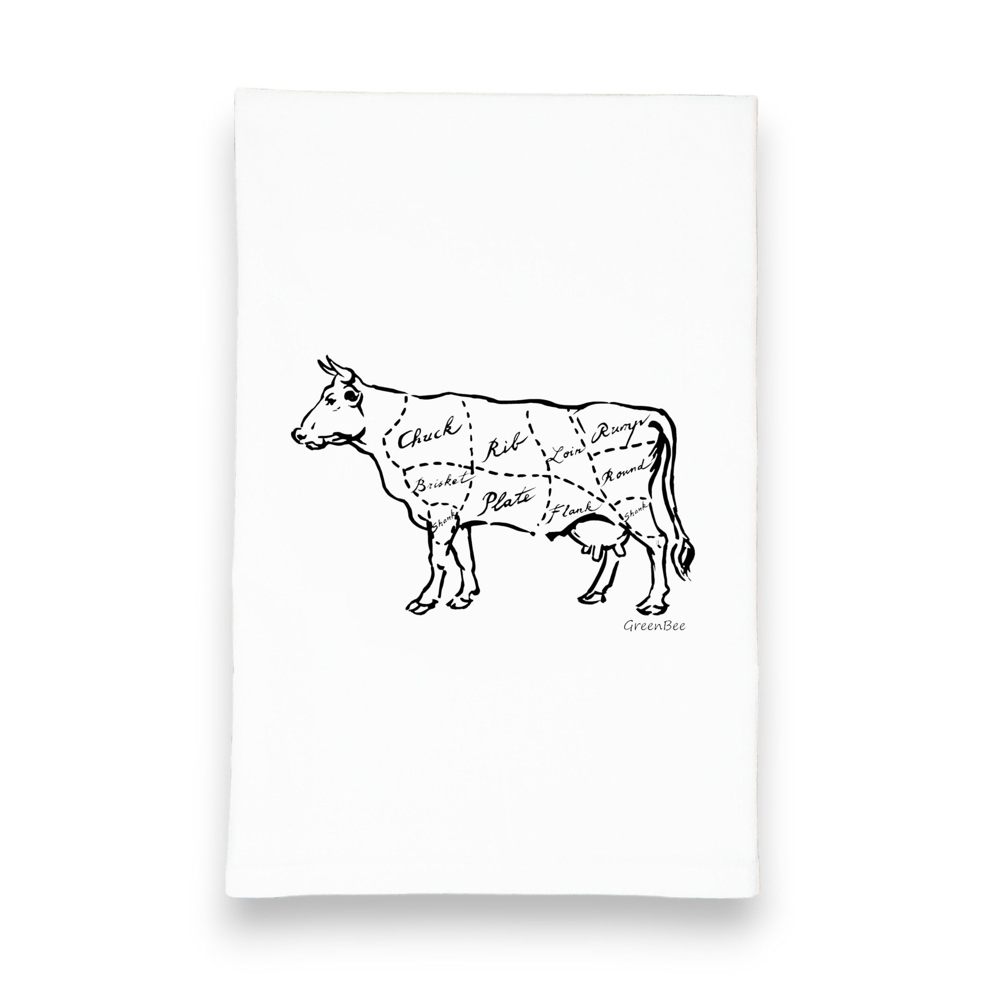 This 'Beef Butcher Cuts Kitchen' tea towel is a low maintenance tea towel for high maintenance messes.