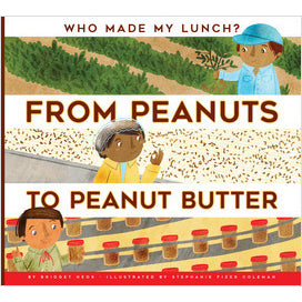 A child wonders where peanut butter comes from and learns about the jobs of peanut farmers and how peanuts are harvested, and how peanuts are made into peanut butter and packaged at a factory. This illustrated narrative nonfiction book includes a map of where peanuts are grown, glossary, and further resources.