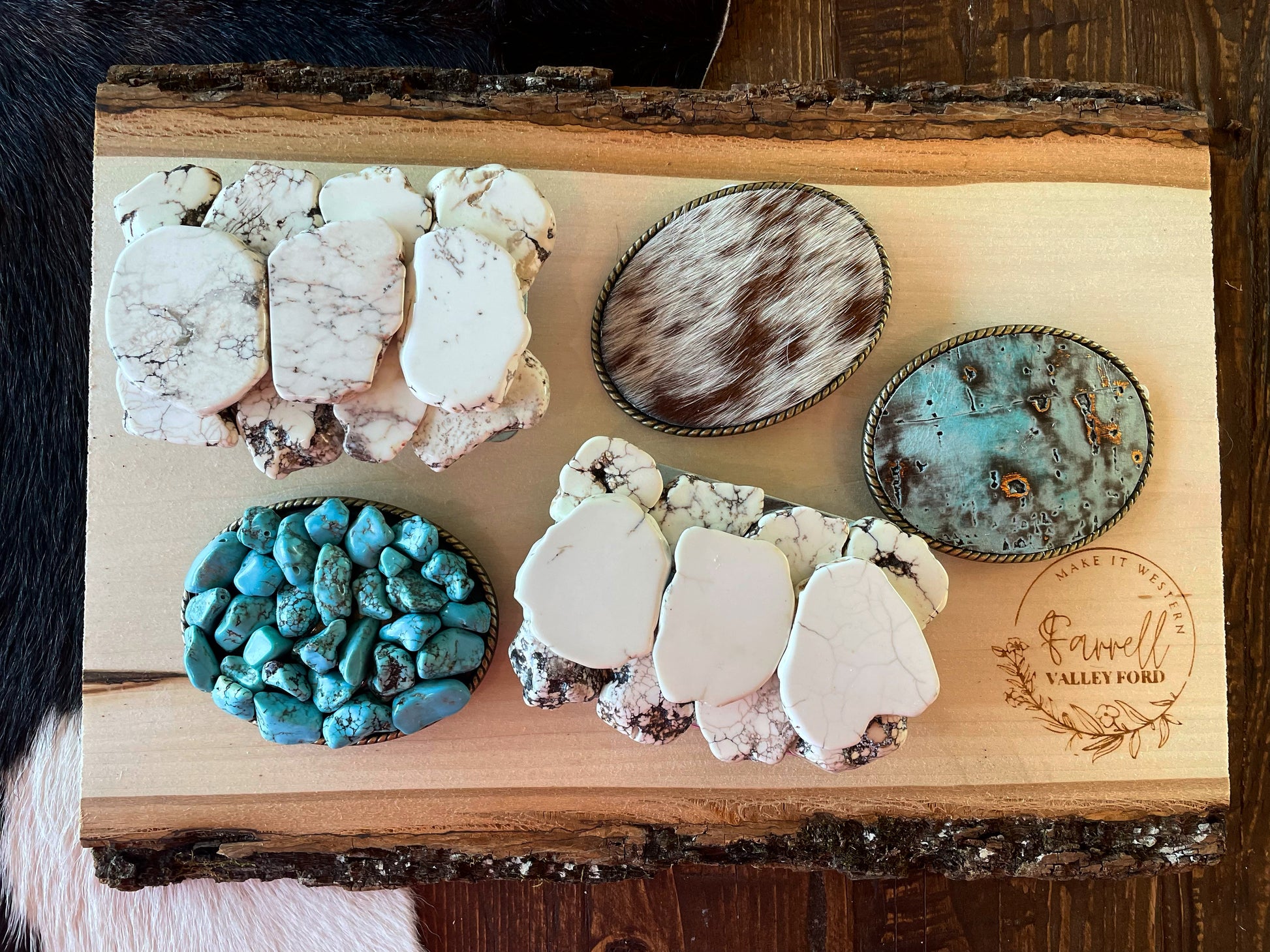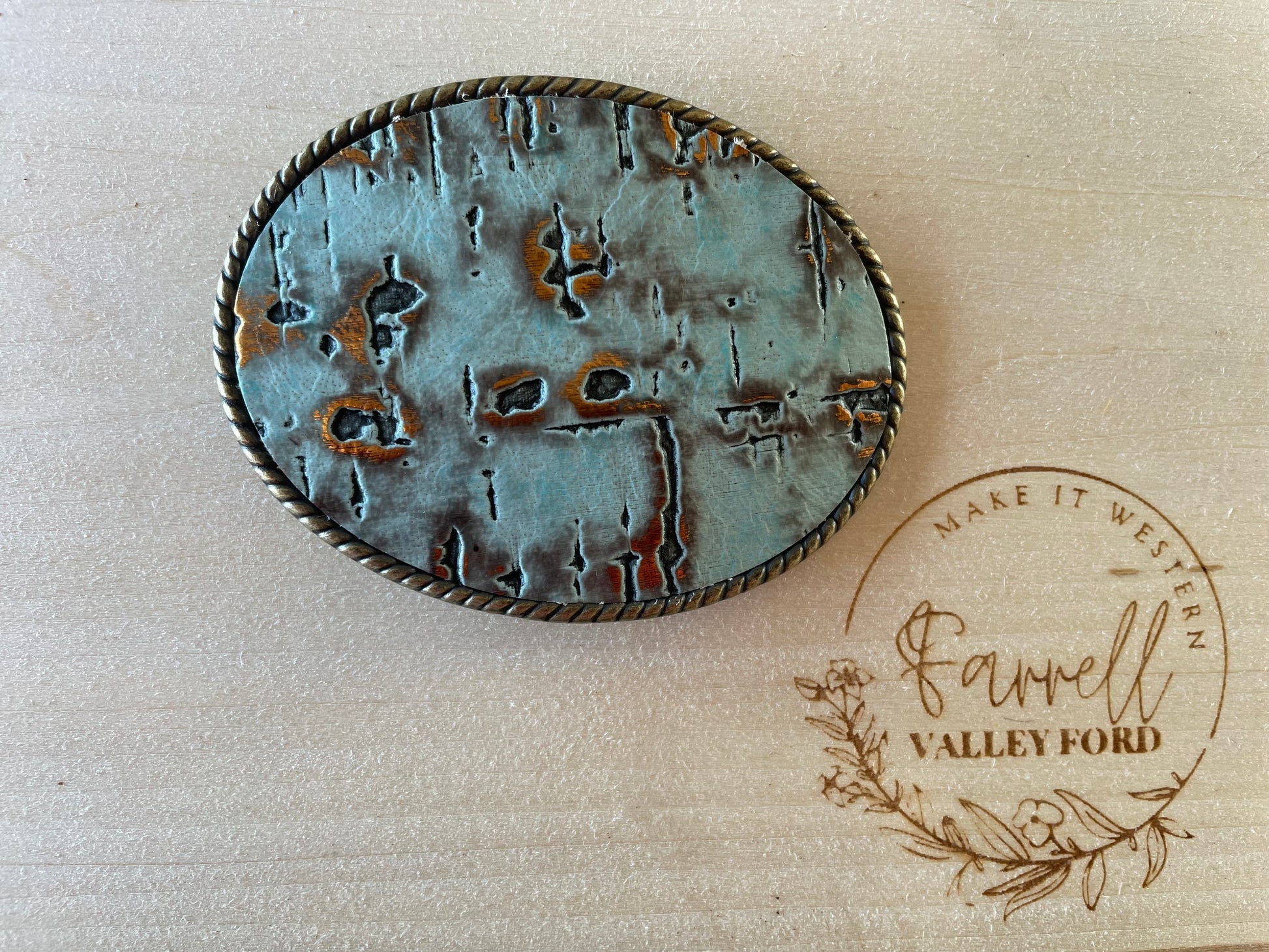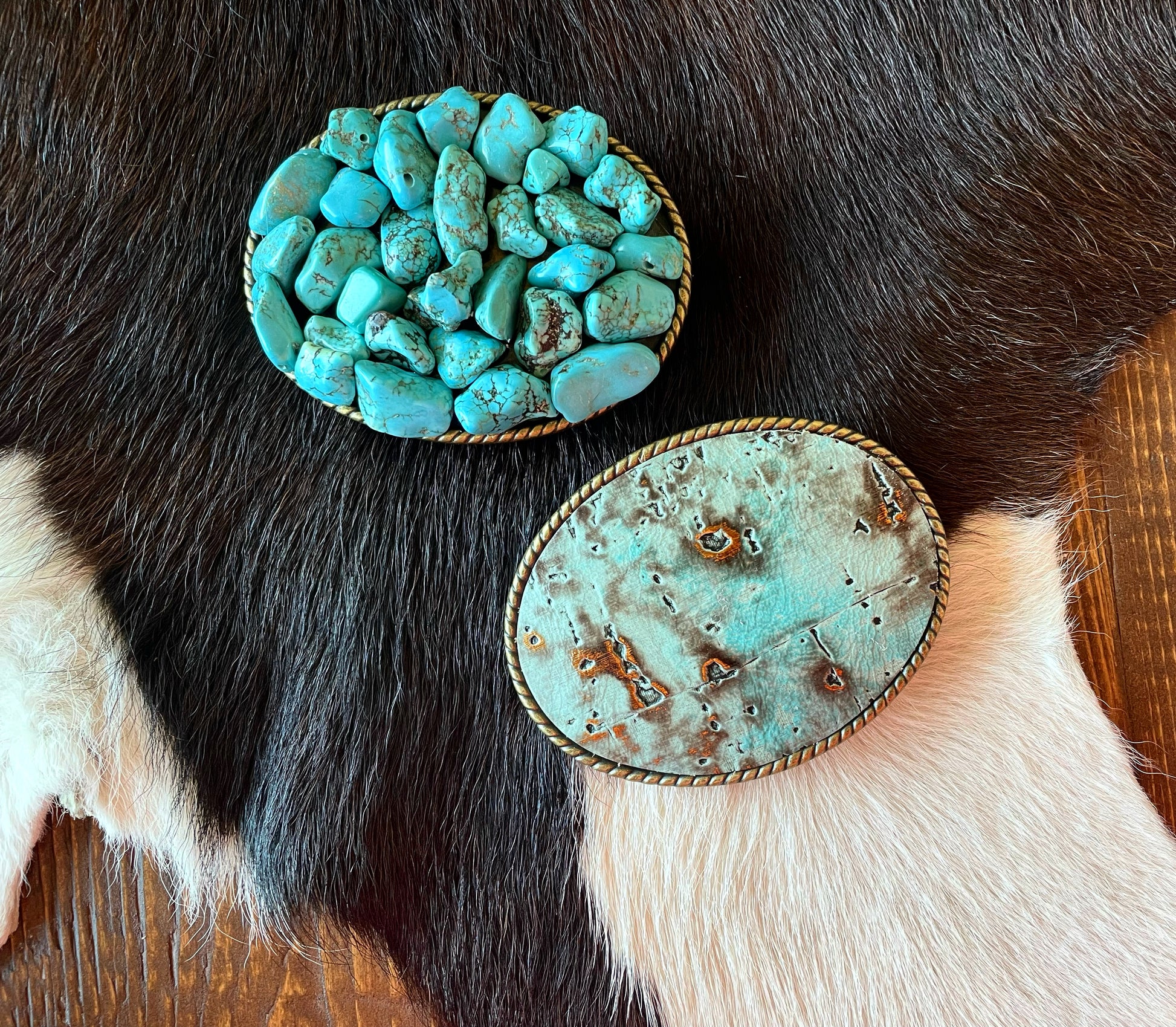 Gorgeous statement piece approximately 3.5" long by 2.5" wide. Antique gold finish. Easily attaches to any belt with snaps or screw-in rivets. Piece is handmade, so while the piece that you receive will look similar to the one in the picture, no two are exactly alike.