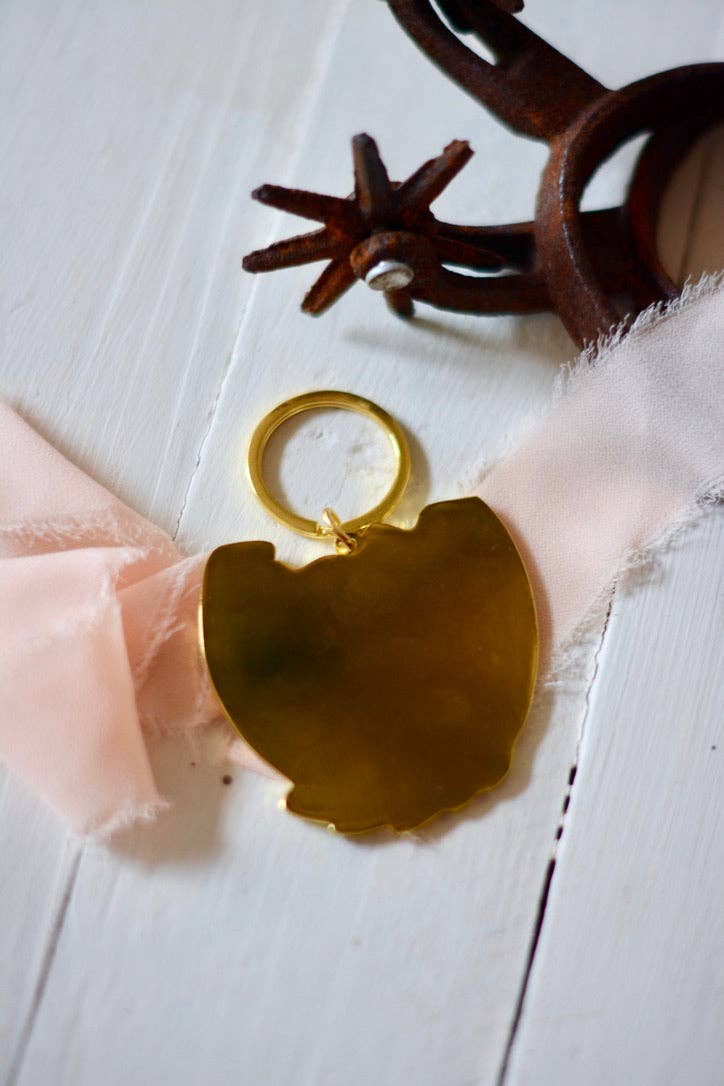 Western Floral Horseshoe Gold and Pink Enamel Keychain