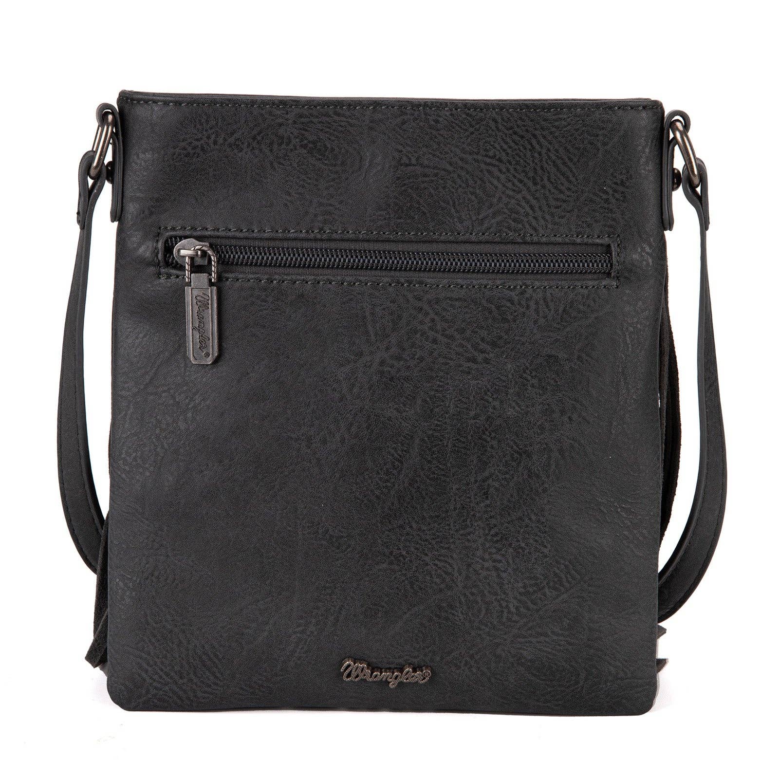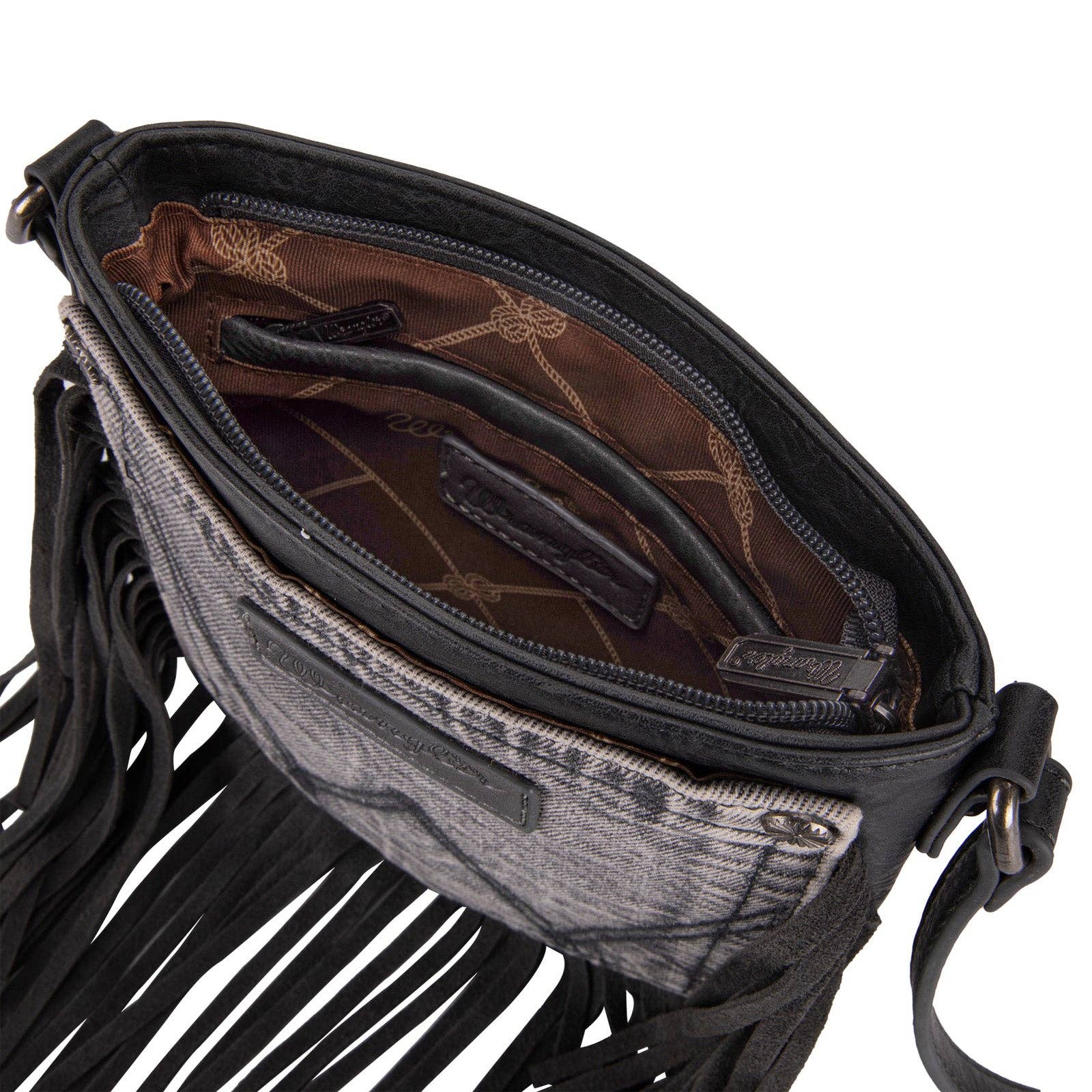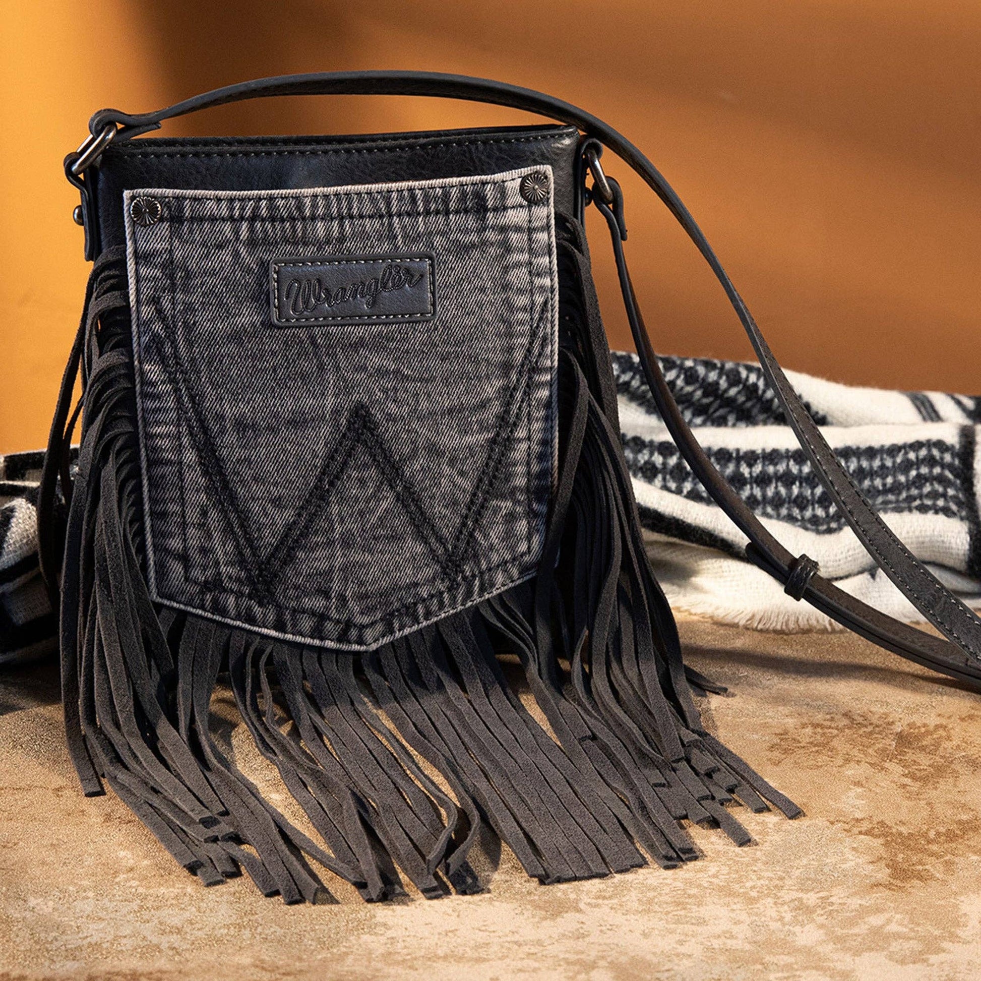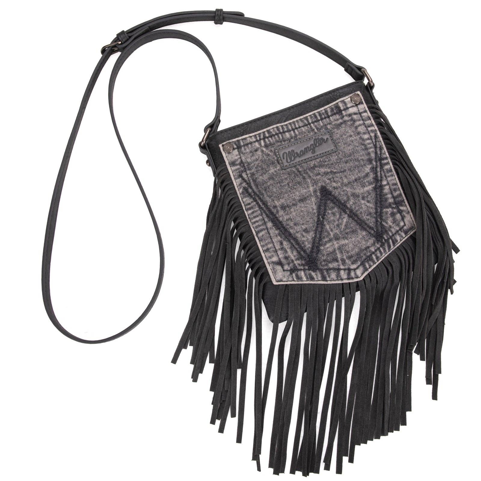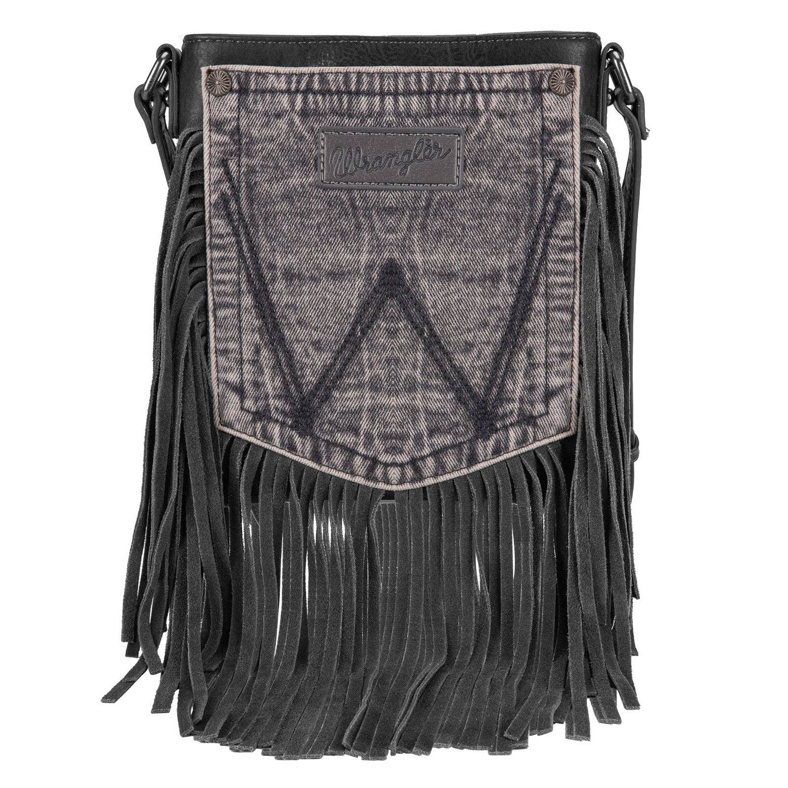 Wrangler Leather Fringe Jean Denim Pocket Crossbody - Light Black